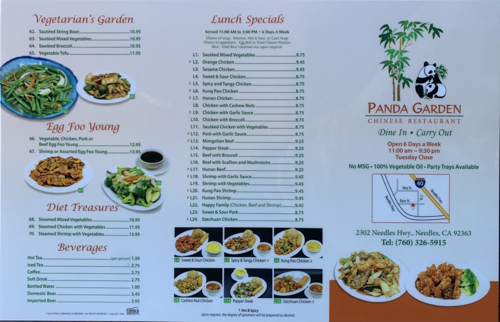 Welcome to Panda Garden, a Halal haven for burger enthusiasts located at 2302 Needles Hwy, Needles, CA. This unique eatery seamlessly blends traditional flavors with a New American twist.
